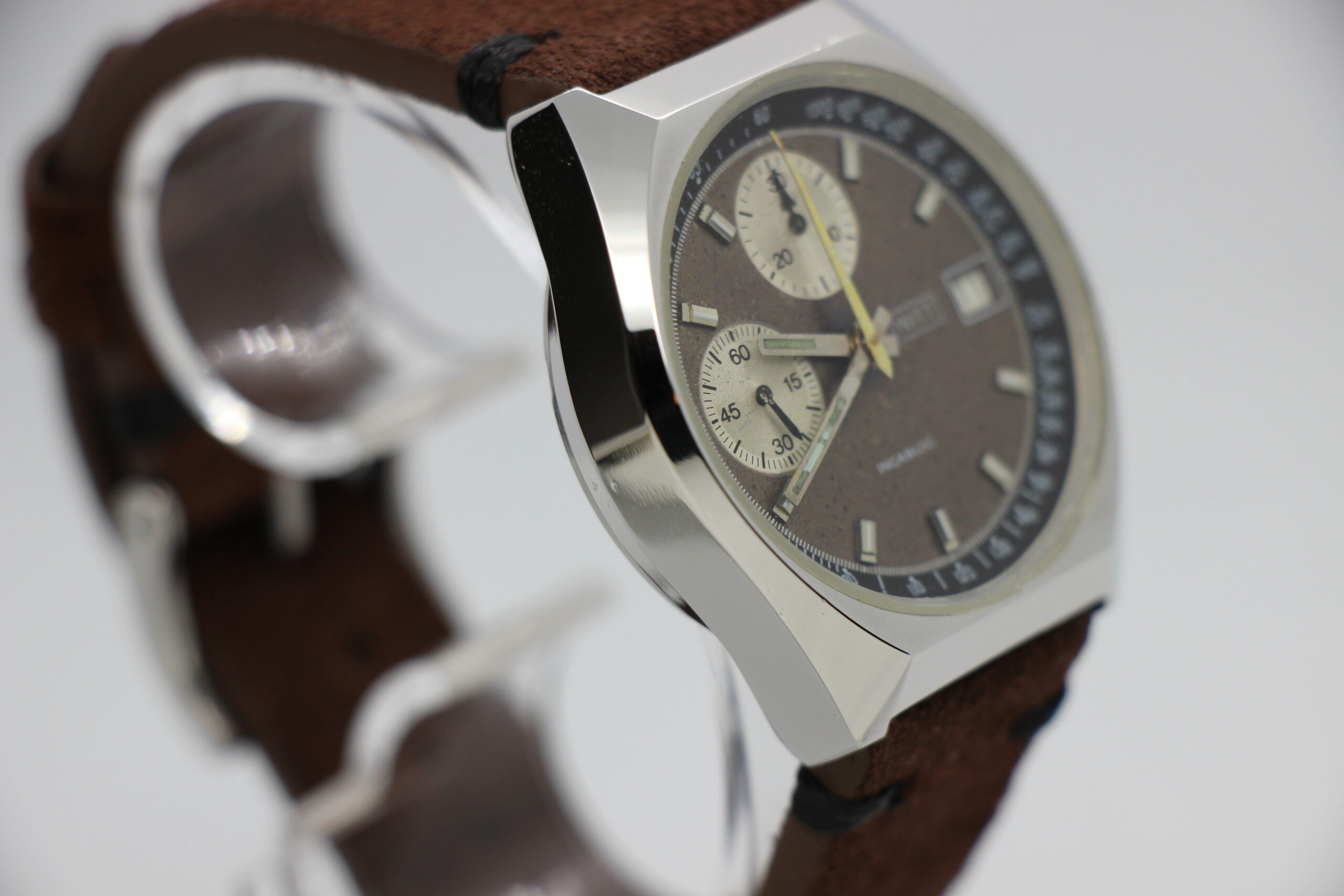 Flot og specielt 70’er Chronograf med en smuk brun urskive