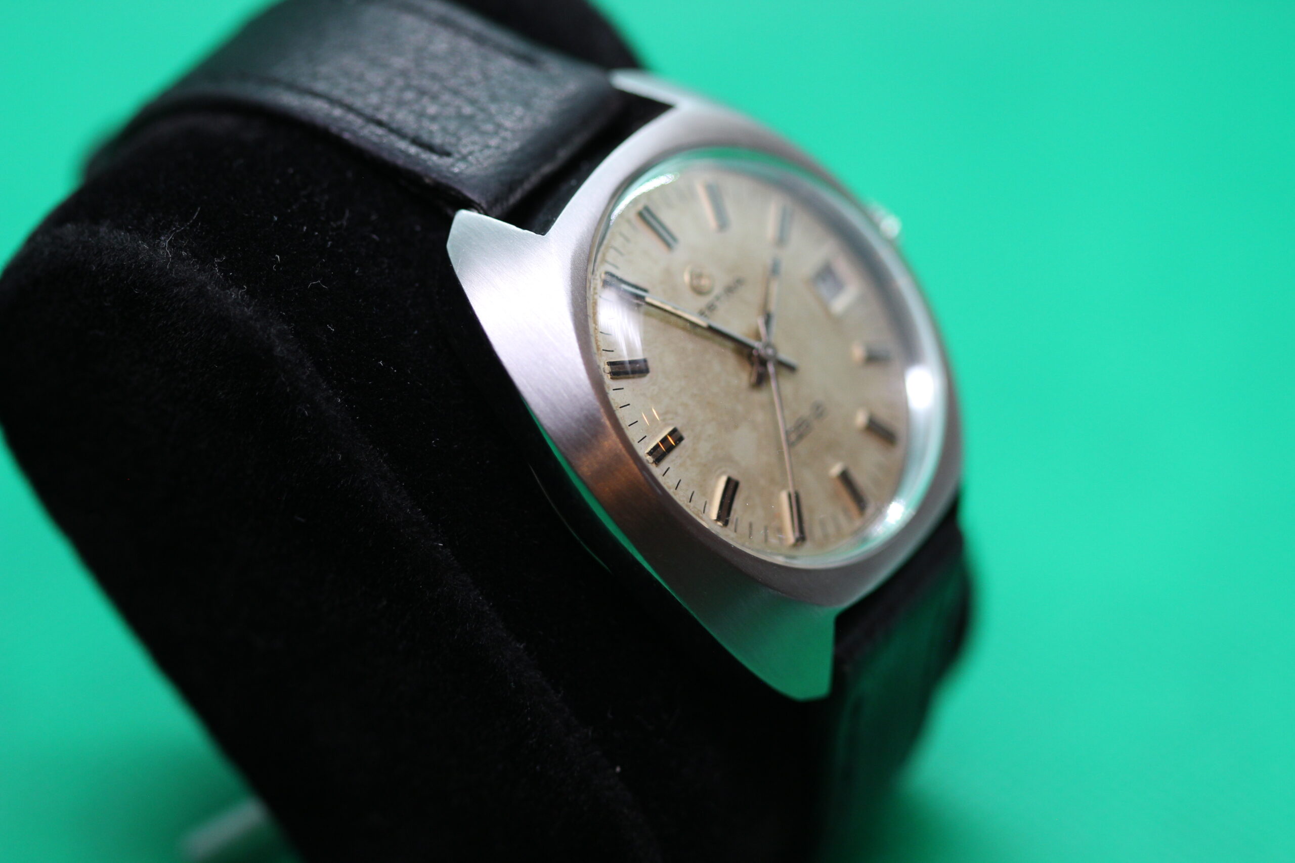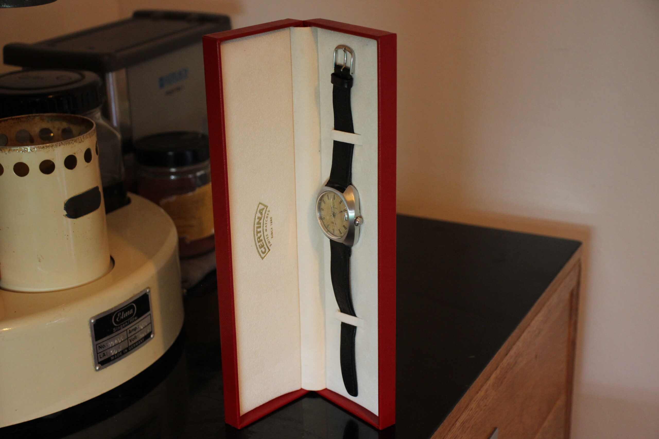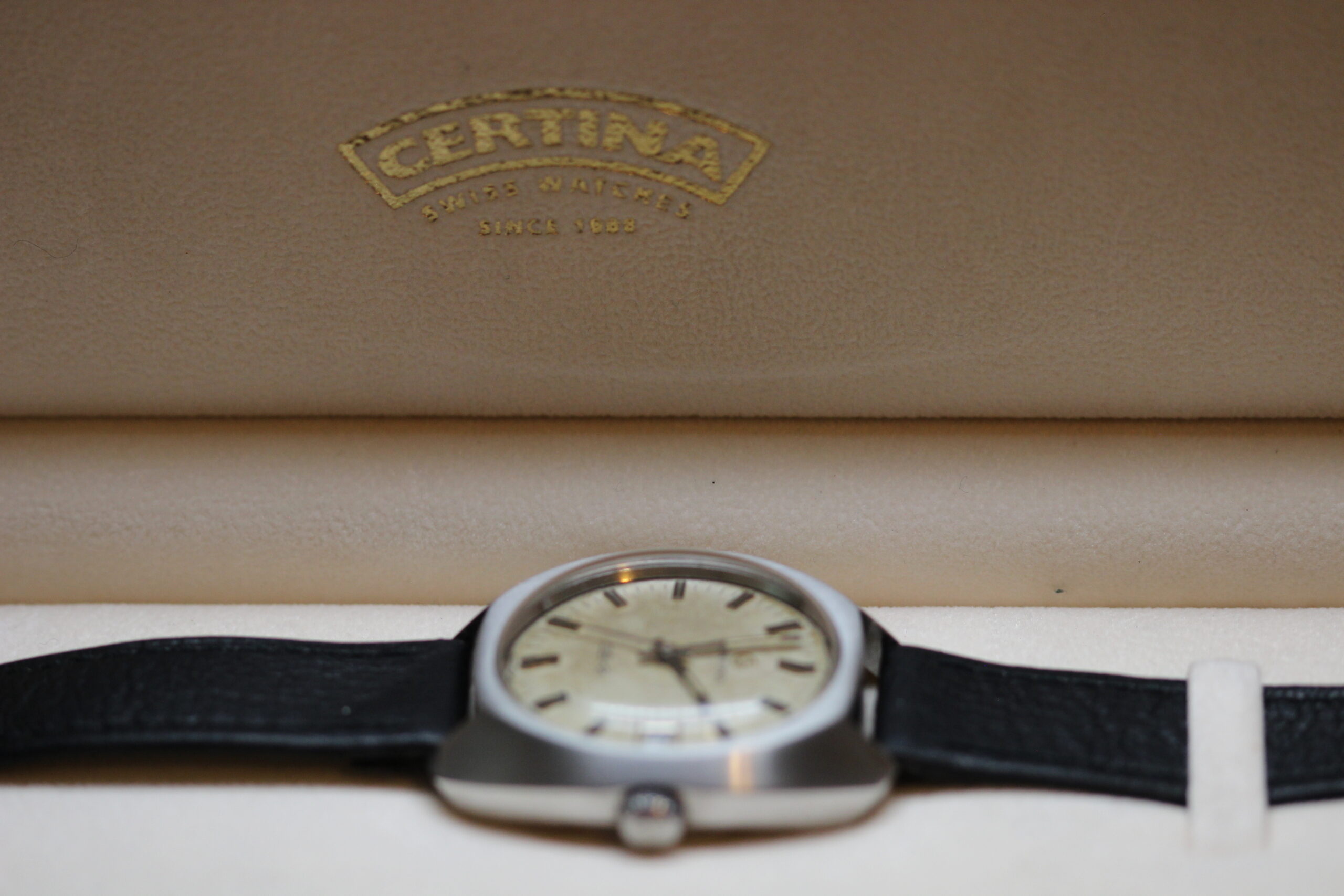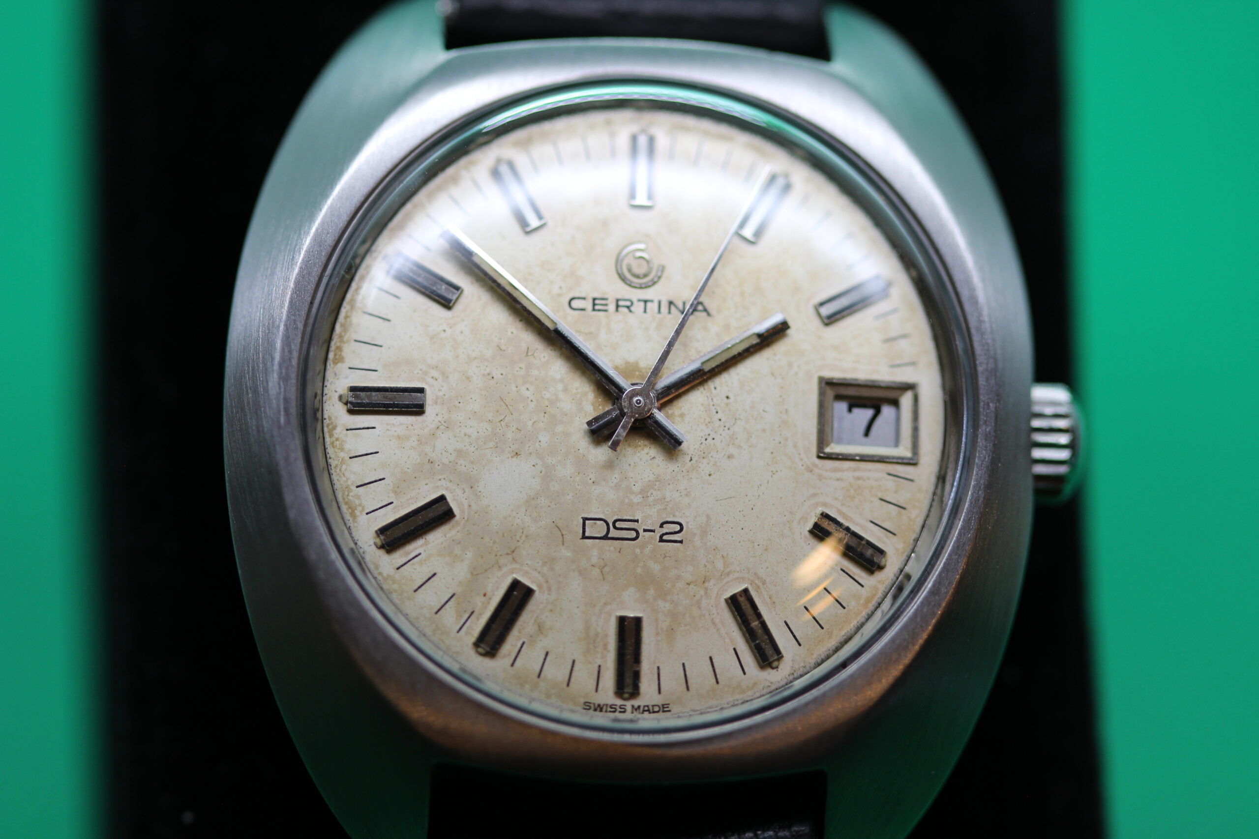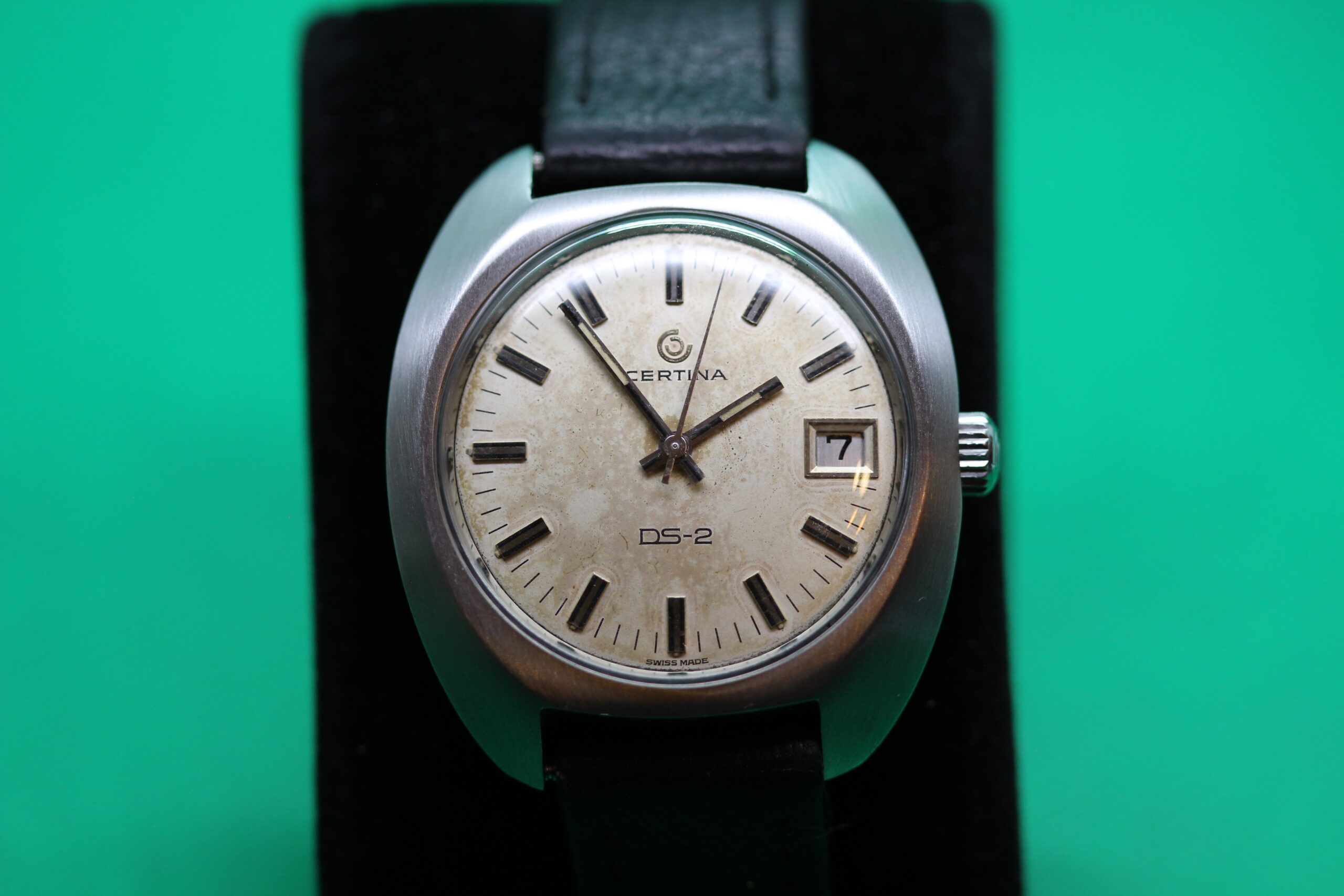 Beskrivelse: Ny-renoveret vintage Certina DS-2. Uret er med manuel optræk. Det kommer på en flot brugt sort perforeret læder rem. Utroligt flot ur i smuk kasse i rustfrit stål.