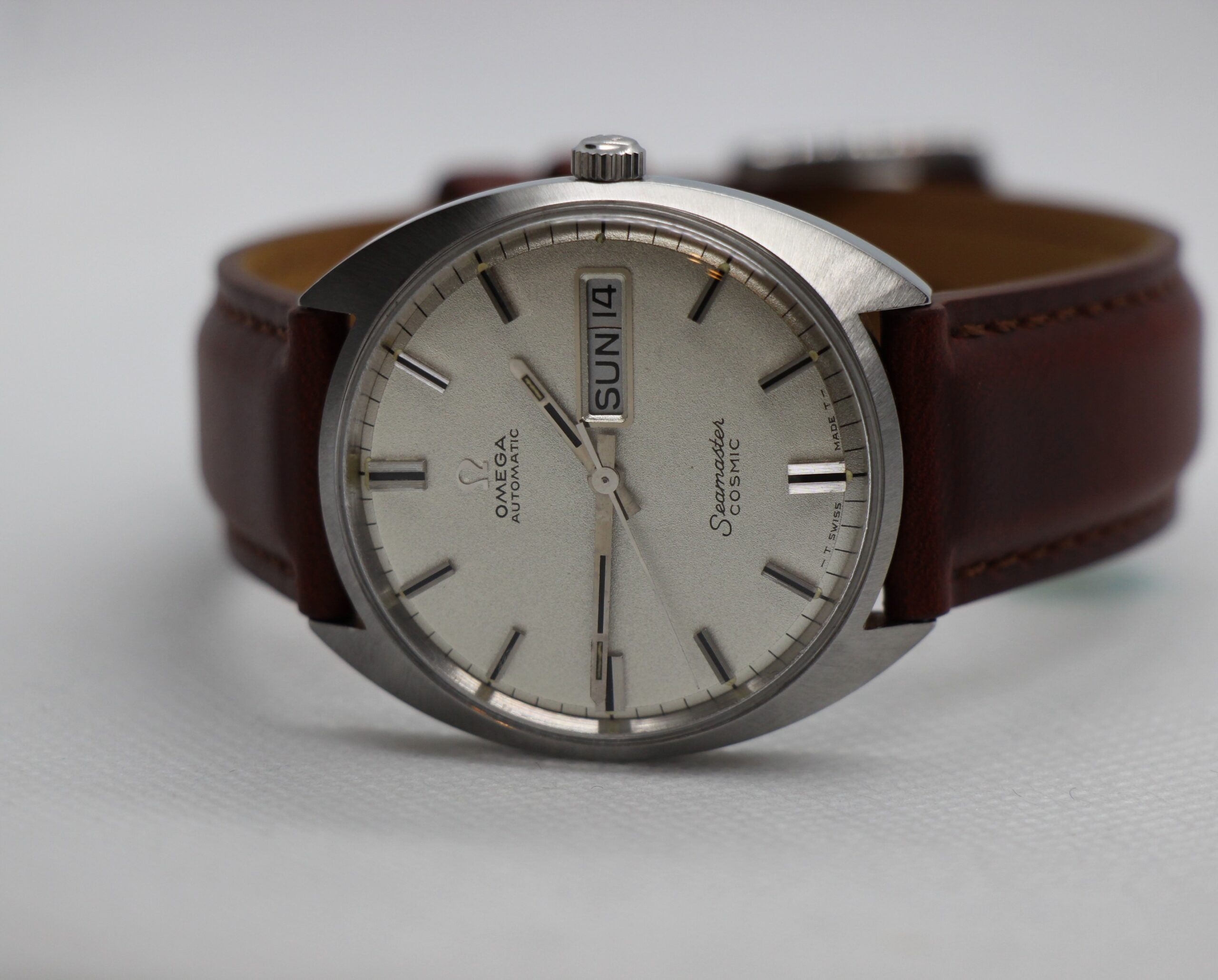 Elegante og smukt Omega Seamaster Cosmic fra 1968. Uret er ny-renoveret og præsenterer en super flot “Sparkle Dial” der fanger lyset pÃ¥ en unik mÃ¥de. Automatiske værk Cal. 752 sikrer præcision, og med bÃ¥de dag- og datovisning er det bÃ¥de praktisk og stilfuldt. Uret har quick-set funktion
