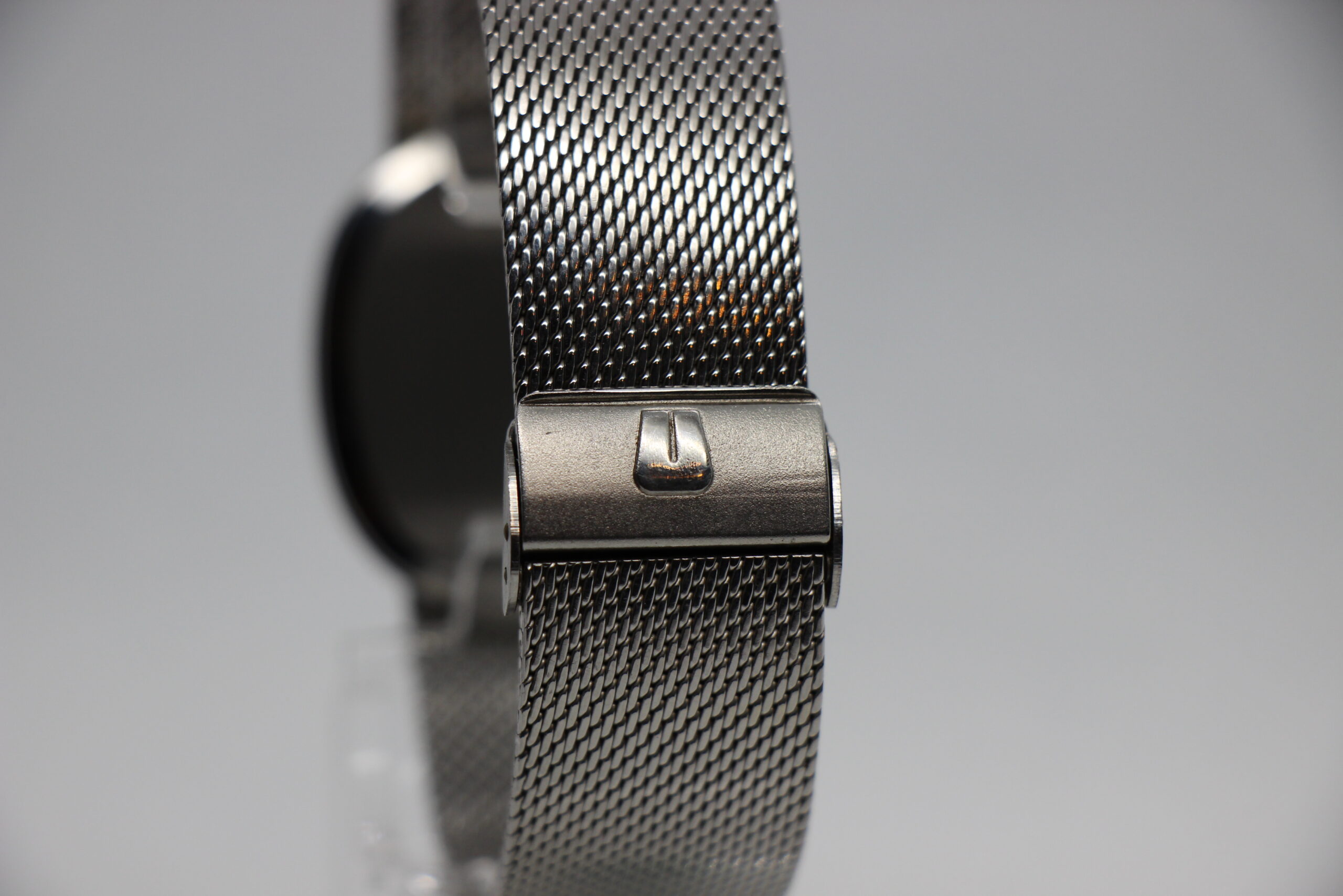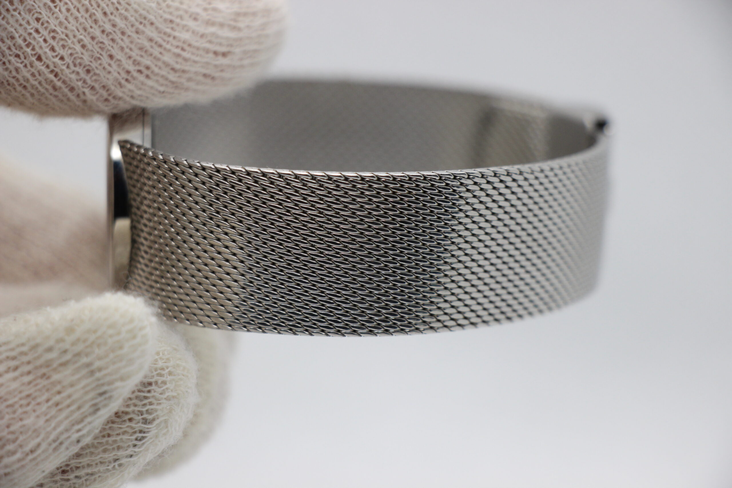 Uret er nyserviceret, hvilket sikrer, at det vil kunne give dig præcision og glæde i mange år frem. Det er forsynet med original krone og glas, hvilket tilføjer til dets autenticitet. Den originale UG mesh-lænke er i super stand uden stræk.